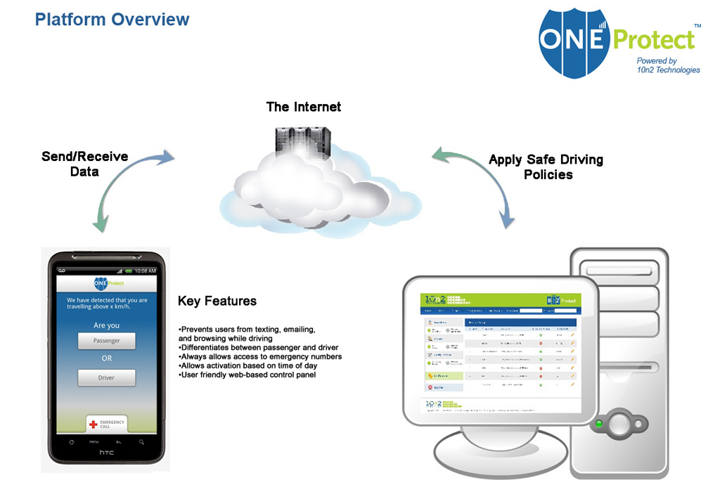 Эти некоторые эксперты – это сотрудники компании 10n2 Technologies, специализирующейся на разработке специального программного обеспечения, предназначенного для предотвращения использования мобильных телефонов и прочих устройств во время нахождения за рулем автомобиля. Одна из новинок компании – приложение OneProtect™, которое способно блокировать определенный набор функций смартфонов в момент, когда их владельцы управляют автомобилем. Сам момент определятся при помощи сервиса GPS, дающего возможность анализировать скорость движения устройства в пространстве и сравнивать ее с установленным пороговым значением.