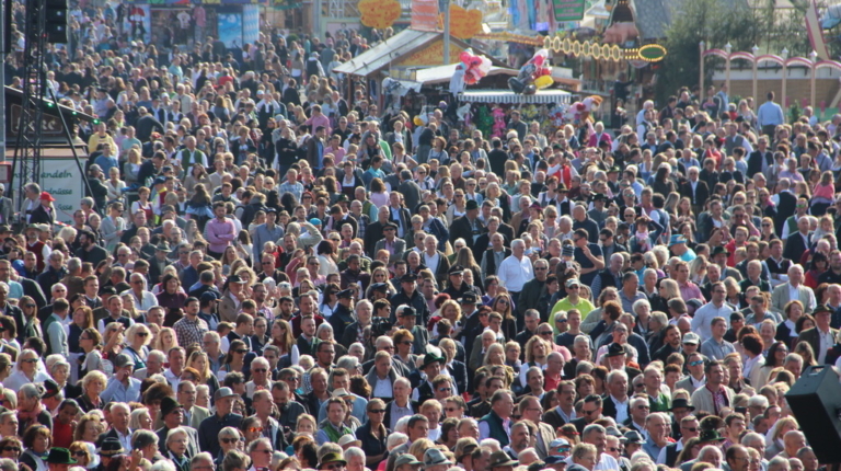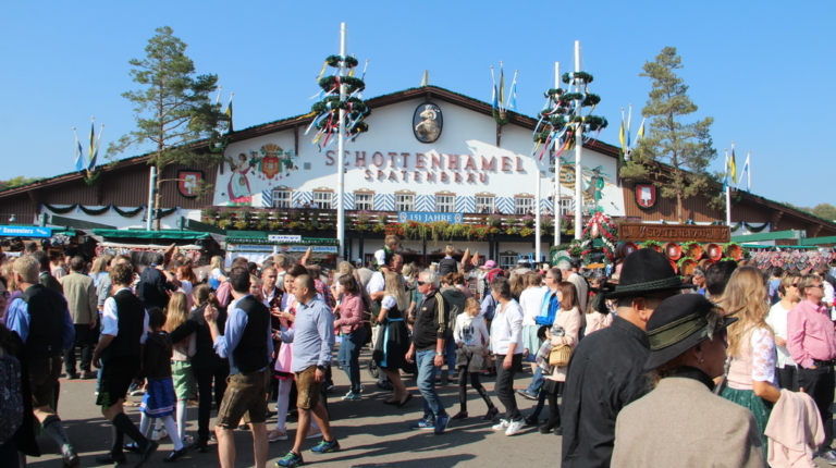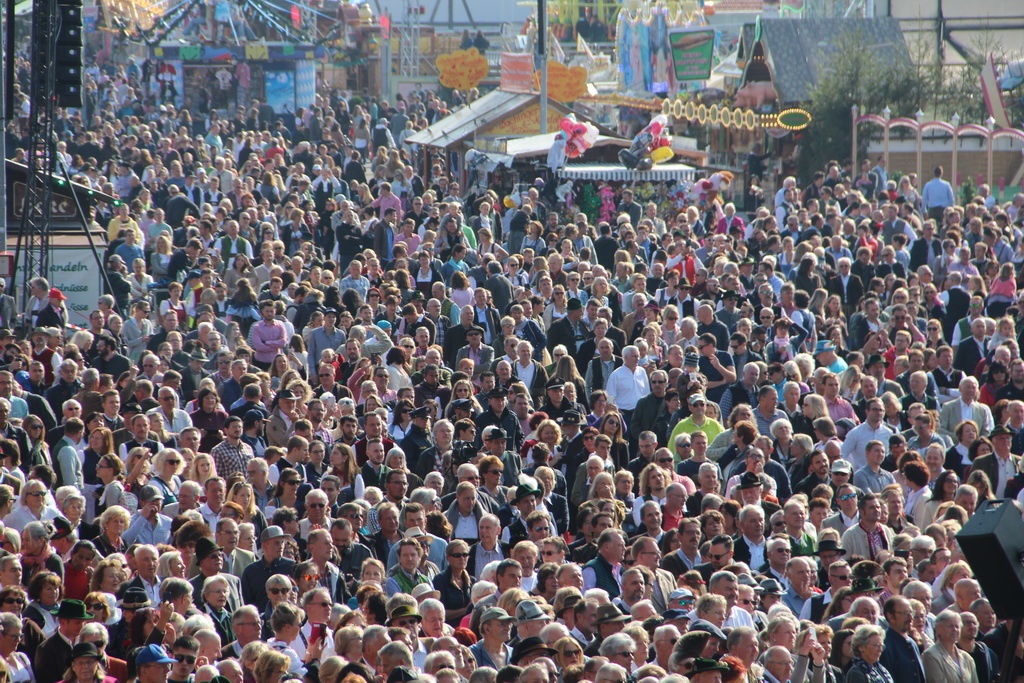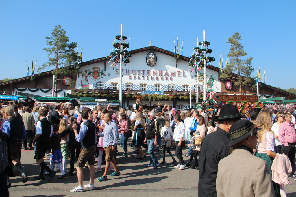 Если вы никогда не были на Октоберфесте, но слышали, что это масштабное мероприятие, поверьте – что бы все себе не представляли, действительность вас все равно впечатлит. Theresienwiese, или Терезин Луг, где проходит фестиваль, просто огромен. И когда мы слышим, что здесь традиционно разбивается 14 больших и 15 маленьких шатров (не много же, да?), надо понимать, что большой шатер вмещает в себя около 10 000 человек. Это масштабнейшее мероприятие, и когда мы приехали к центральному входу на фестиваль в воскресенье в девять утра с надеждой спокойно все отснять и поработать с техникой, оказалось, что в это время к входу стекается нескончаемый поток народа: гости не хотят терять ни минуты. За время фестиваля выпивается около 7 млн литров пива (а надо отметить, это очень крепкое пиво), здесь съедается 1,5 млн сосисок, 500 тысяч жареных куриц, 65 тыс свиных рулек и 84 быка.