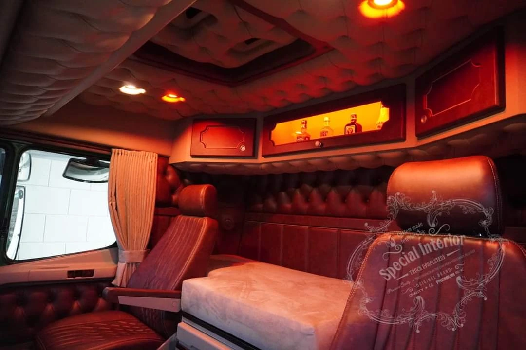 Как видно из его названия, оно специализируется на доработке интерьера грузовиков. Только посмотрите, что его специалисты в итоге сделали из кабины тягача Mercedes-Benz SK. Что и говорить, такой роскоши позавидует любой американский дальнобойщик, разбалованный богато обставленными кабинами с огромными спальниками.