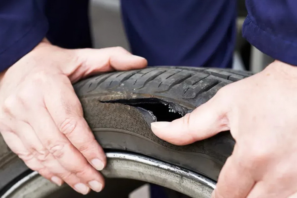 - осмотреть боковины, где могут находиться порезы и порывы. После монтажа покрышки на диск и закачки ее воздухом боковины нужно осмотреть еще раз. Потому что повреждения каркаса (полученные на ухабах) проявляются в виде шишек только при наличии в шине давления.