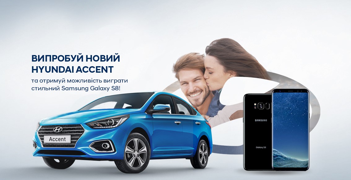Испытай новый Accent! Гарантировано получи подарок от Hyundai и стань участником розыгрыша Samsung Galaxy S8.