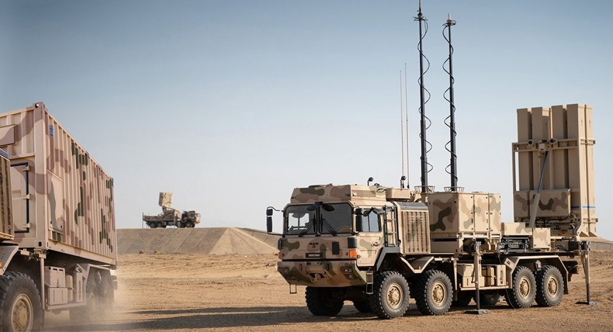 Напомним, что ЗРК IRIS-T относится к зенитно-ракетным комплексам средней дальности. В его состав входит РЛС, способная обнаруживать цели до 250 км, командный пункт, а также пусковая установка на 8 ракет. Дальность поражения – до 40 км, а высота – до 20 км. Преимуществом ЗРК является то, что в транспортном положении комплекс спокойно помещается в 20-футовые контейнеры и может размещаться на различных шасси, например MAN SX45 (8х8).