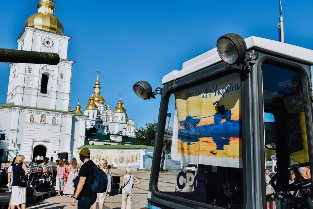 Сегодня, 28 июля в День Украинской Государственности в свет вышла очередная марка Укрпочты, посвященная героической борьбе нашего народа с российскими оккупантами. Она называется “Доброго вечора, ми з України!”. На ней изображен колесный трактор, тянущий за собой подбитую вражескую БМП.