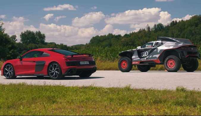 Новый Audi R8 и раллийный Audi RS Q e-tron сошлись в дрэге