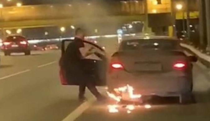 Эффектная погоня за пьяной девушкой на горящем Мерседесе (видео)