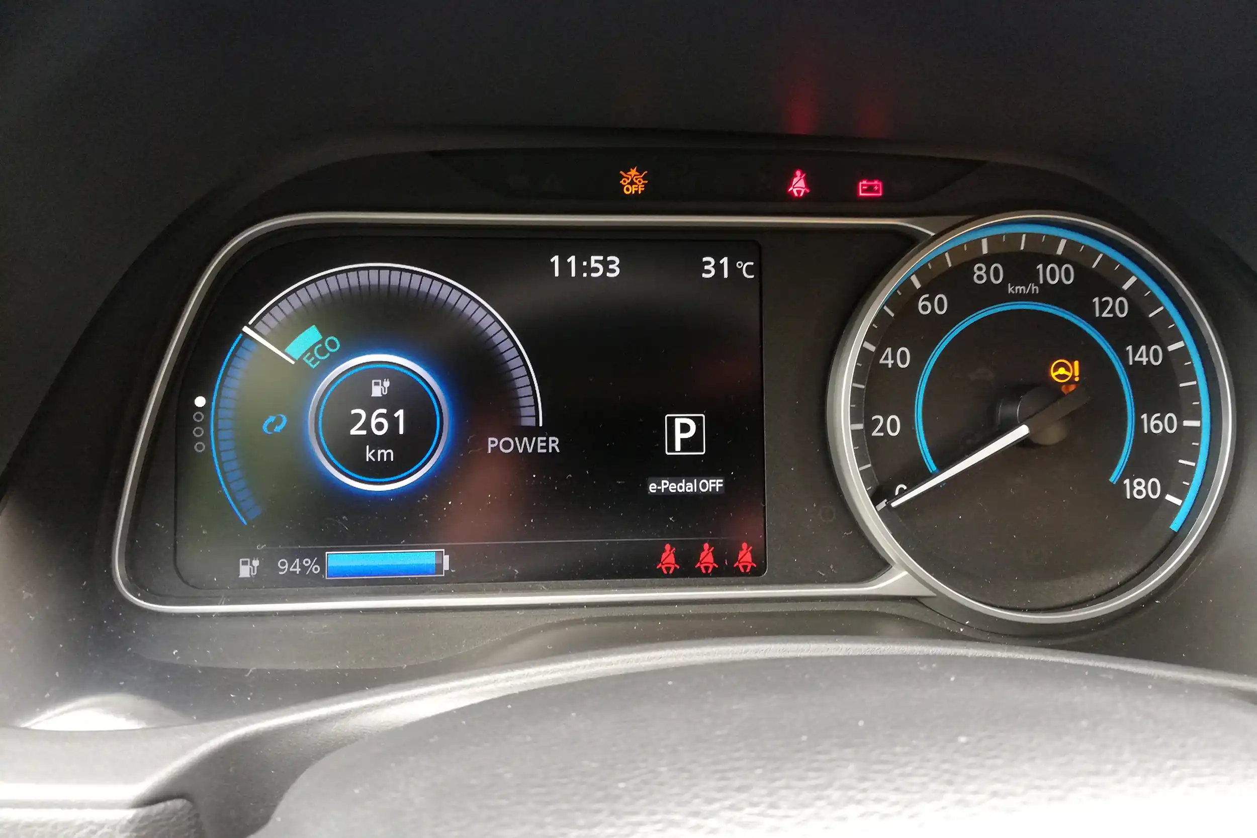 В таком ритме, да еще и по загородным трассам (а электромобили больше любят город) расход крутился около 16 кВт*ч на 100 км, что довольно таки немало и выше заявленного производителем. В итоге мы проехали около 160 км и наш Nissan LEAF обещал покрыть расстояние еще километров 15-20.