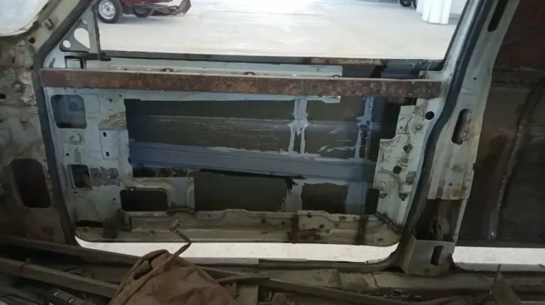 Заднюю пару дверей мастера СТО просто заварили, центральные стойки немного отодвинули назад, а передние двери сделали шире. Также несколько короче стала крыша автомобиля, но колесная база осталась прежней. Работы еще много: кузовные панели и днище не готовы, а салона фактически нет.