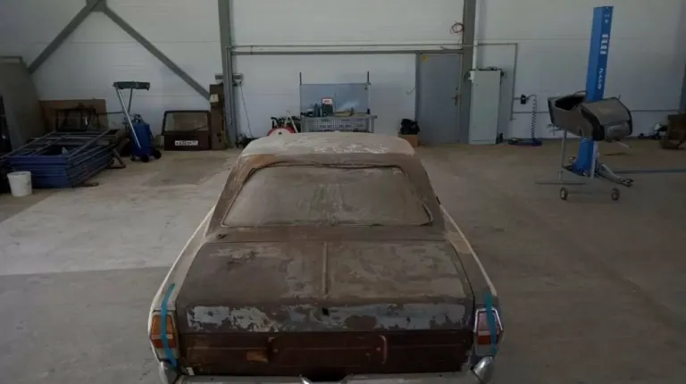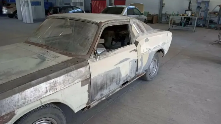 Судя по фото, автомобиль находится в таком состоянии, что уже сложно определить, на базе какой модели создан – ГАЗ-24 или ГАЗ-24-10. Радиаторная решетка и пассажирская дверь у «Мустанга» от ГАЗ-24-10, водительская дверь и зеркала заднего вида – от ГАЗ-24 Волга.