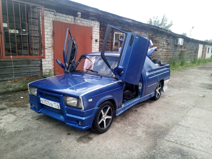 Откровенно говоря, плохо здесь все. Этому квадратному кузову совсем не идет длинное грузовое пространство, низкая посадка, обтекатели за кабиной, кастомные бамперы, патрубки выхлопной системы и, конечно, так называемые ламбо-двери.