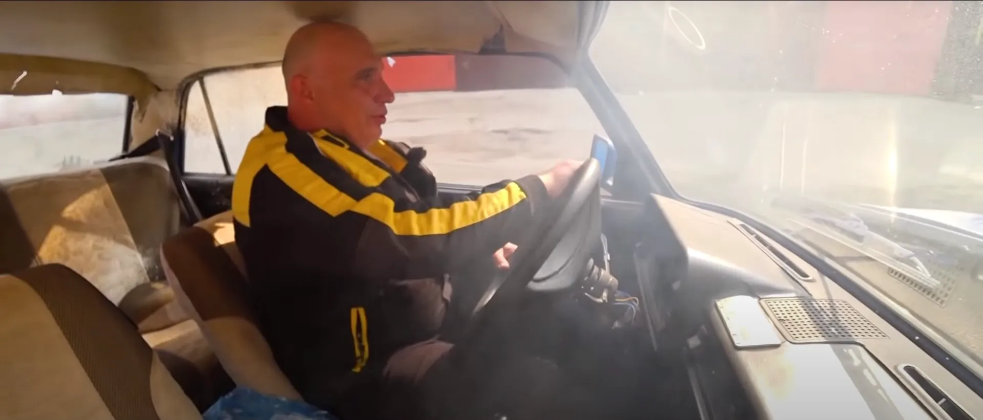 Удивительно, но транспортное средство движется и делает это вполне уверенно. Машина разгоняется и набирает скорость, а передачи можно переключать. Появившийся дым недвусмысленно намекает на высокую вероятность возгорания. По-видимому, смелую авантюру решили остановить вовремя.