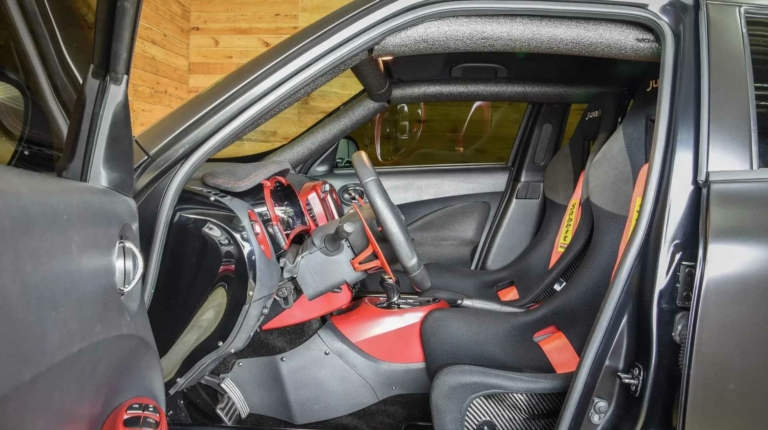Окрасили кузов в матовый черный цвет. В похожей стилистике выполнен и салон, но с красными акцентами. В оснащение вошло новое рулевое колесо, спортивные ковши и гоночные ремни безопасности. К тому же установлен каркас безопасности и несколько огнетушителей. Оценили уникальный Nissan Juke-R в 280 тысяч долларов. Впрочем, в 2020 году владелец уже выставлял эту машину на продажу, но тогда он хотел выручить за нее не менее 650 000 долларов. Видимо, покупателя не нашлось, и он решил значительно снизить цену.