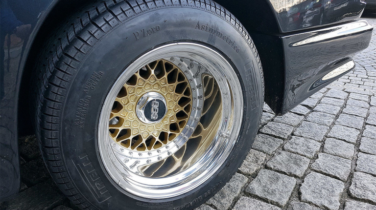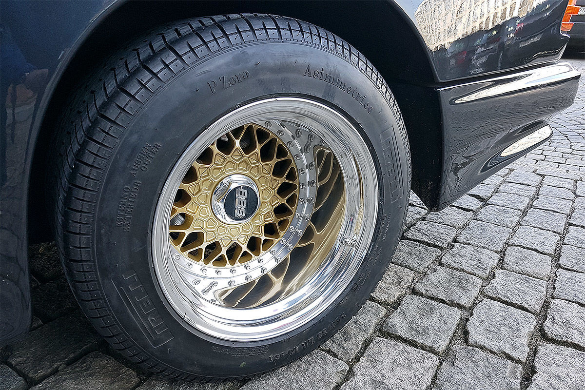 Внешность пестрит традиционными для некогда известного тюнера атрибутами, популярными в безумные 80-е годы: расширенные арки колес, агрессивные воздухозаборники, огромный спойлер и золотистые диски BBS.