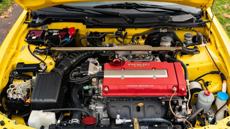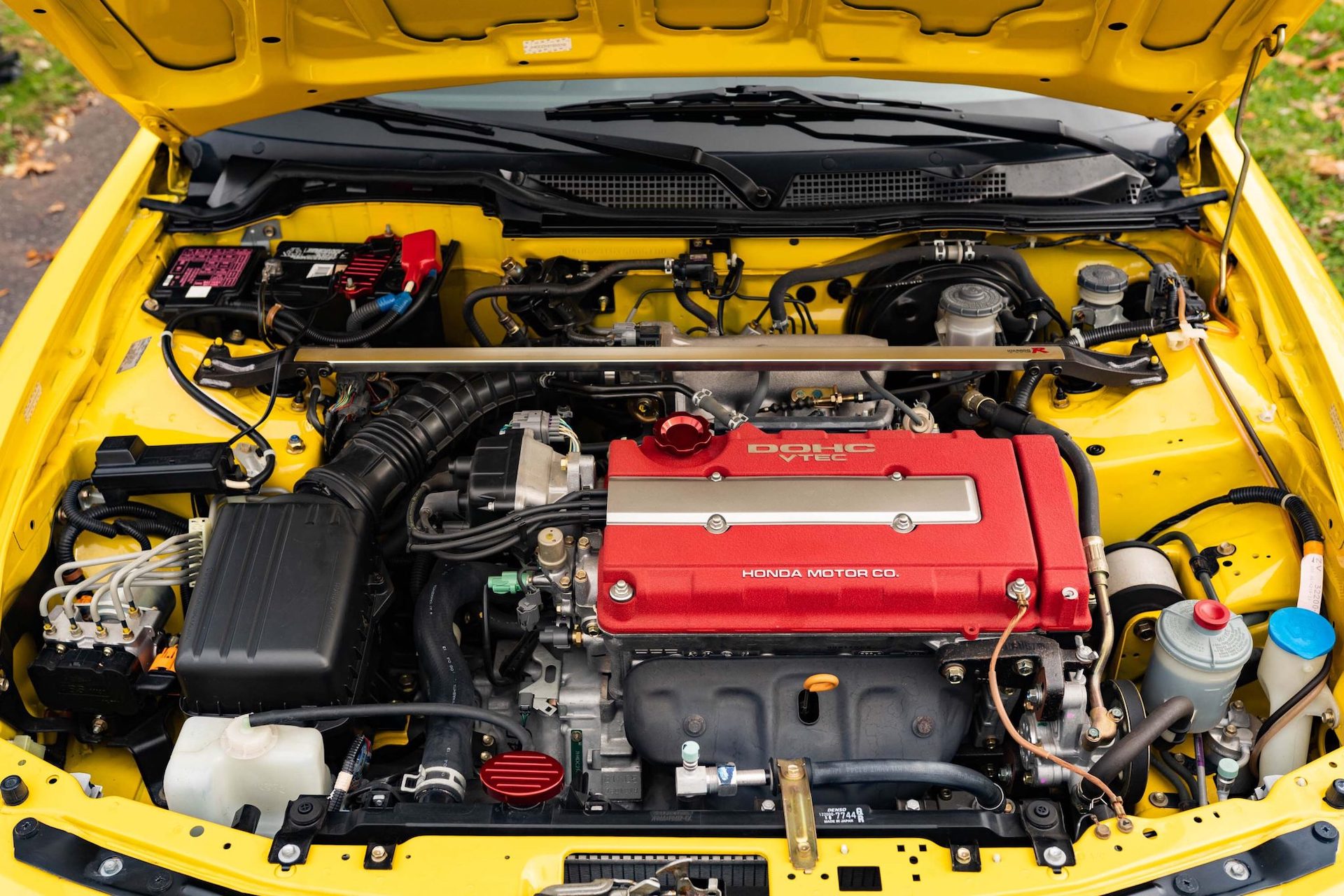 Представленная Acura Integra Type R была выпущена в 2000 году. Ее пробег составляет 10 700 км (6649 мили). К тому же автомобиль находится в идеальном, практически заводском состоянии. Кузов купе окрашен в ярко-желтый цвет, а салон отделан темно-серой тканью с фирменной красной прострочкой, на которой нет ни малейших следов износа. Также стоит отметить наличие оригинальных колесных дисков и шин Bridgestone Potenza.