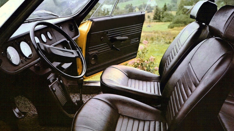 Агрегат трудился в паре с 4-ступенчатой механической КПП. Привод — задний, разумеется! Чем не бюджетный Порше? Разгон до 100 км/ч занимал основательные 18,5 с, а максимальная скорость достигала 145 км/ч.