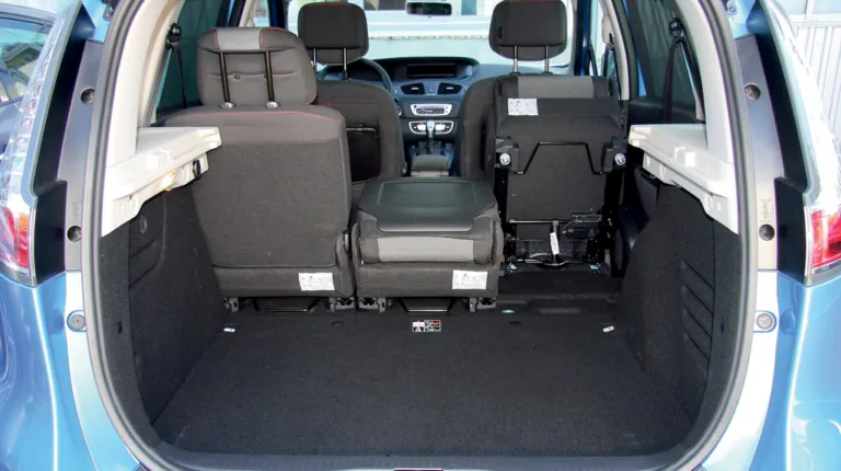 В отличие от многих своих соперников герой нашего материала (равно как и его предшественник) представлен двумя модификациями: 5-местным Scenic (со стандартной колесной базой 2705 мм) и 7-местным Grand Scenic (с удлиненной на 65 мм базой – всего 2770 мм). «Короткая» версия 5-местная, а вот «длинная» бывает как 5-, так и 7-местной (третий складной ряд кресел прячется в полу багажника). Что любопытно – на вторичном рынке чуть большее распространение получили более вместительные Grand Scenic – они могут перевезти на два пассажира больше и отличаются большим грузовым отсеком – 645/2085 л против 470/1870 у Scenic. Кстати, благодаря сдвижной конструкции второго ряда багажнику «длинной» версии при 5-местной компоновке салона можно добавить 138 л, а «короткой» – 107 л. А вот в 7-местой конфигурации багажник Grand Scenic получается небольшим – всего 210 л.