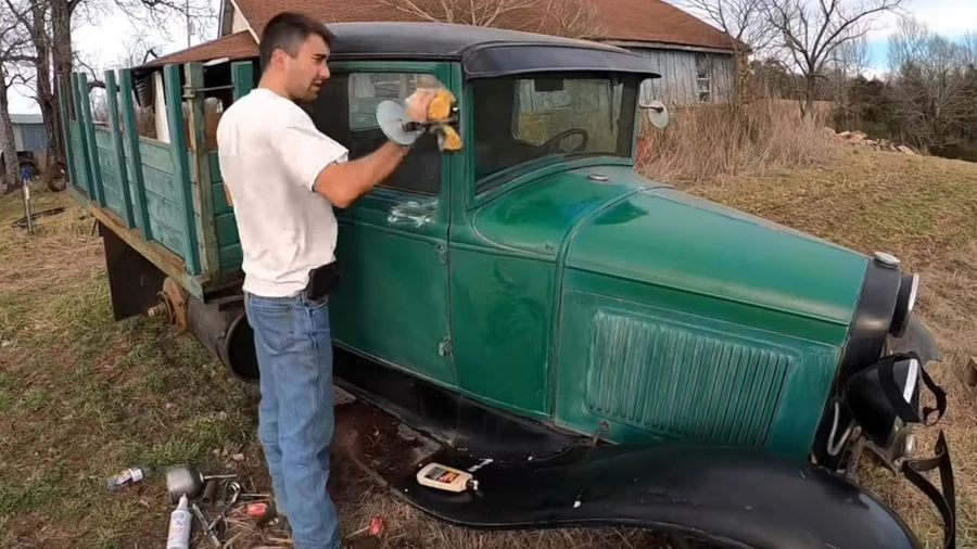 Кабину грузовика покрасили в сочный зеленый цвет и установили новые шины, которые автор ролика заказал в другом штате. Все ради того, чтобы впервые проехаться за рулем легендарного Форда.