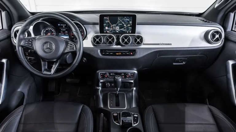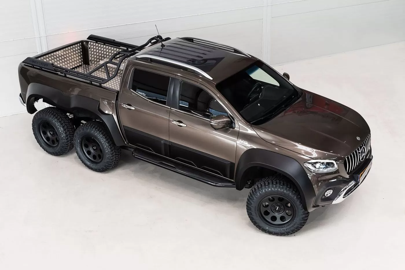 Фактически, трехосный Mercedes-Benz X-Class построен как более дешевая и практичная альтернатива G63 AMG 6×6. «Бюджетный» пикап укомплектовали дизельным мотором V6 мощностью 258 л.с. Грузовая платформа пикапа покрыта металлическими листами.