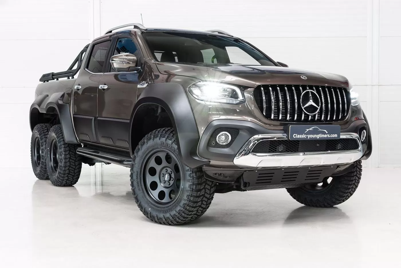 Автосалон Classic Youngtimers Consultancy выставил на продажу уникальный трехосный пикап Mercedes X-Class. Шестиколесный внедорожник, построенный голландской компанией Classic Youngtimers, оценили в 95 000 евро.