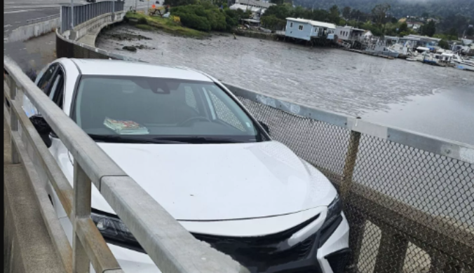 П'яний водій Toyota Camry припустився помилки і застряг на пішохідному мості (фото)