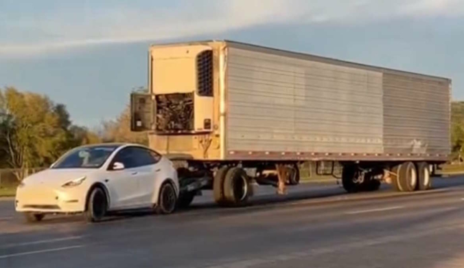 Tesla Model Y помітили під час буксирування 16-метрового напівпричепа