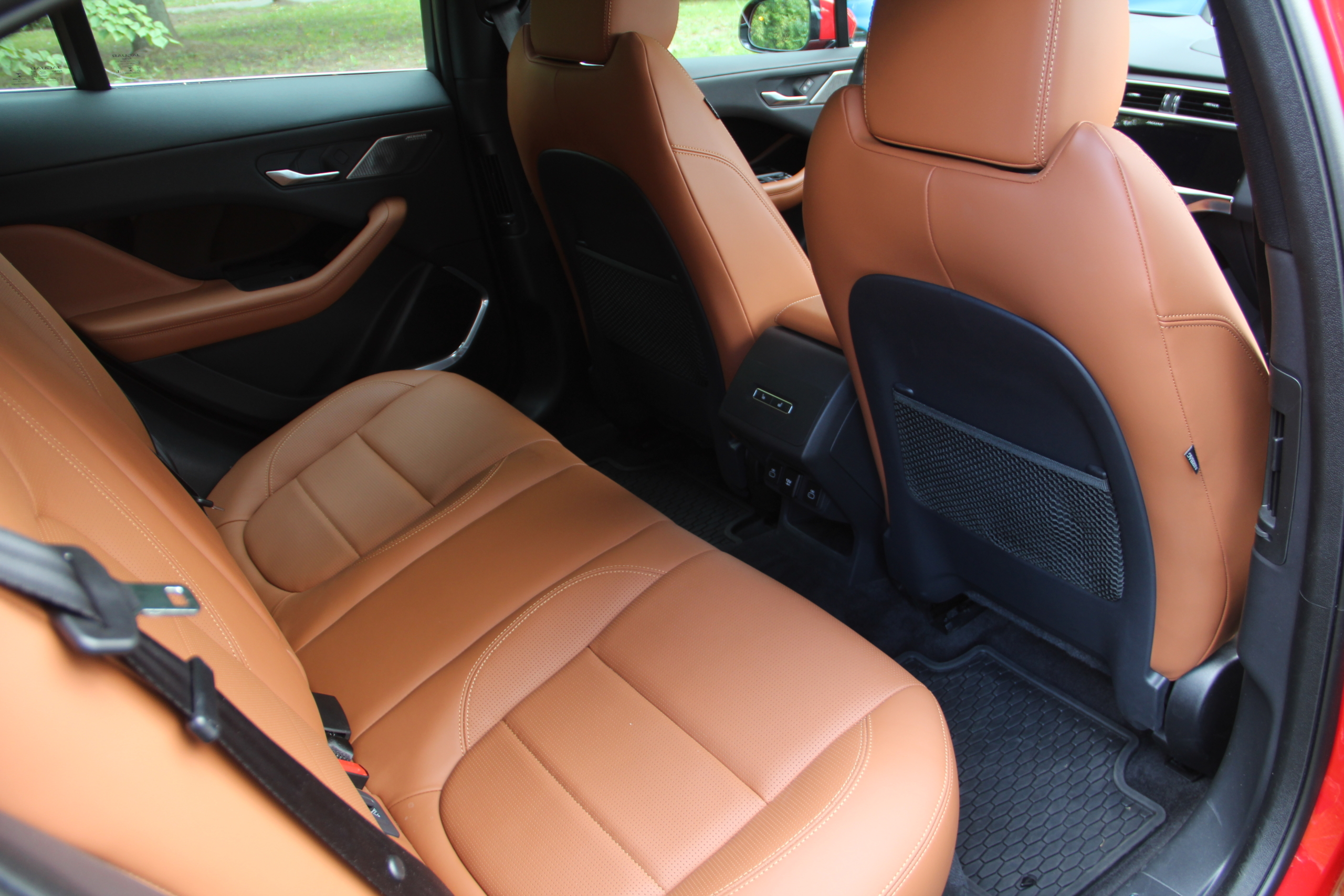 На задньому ряду все без змін: тут просторо, комфортно (сподобалися кути нахилу подушки і спинки), а скляний дах дарує відчуття ще більшого простору. Ну і будь-яка поїздка для задніх пасажирів тут куди цікавіша! Це ж рішення дарує пару-трійку додаткових сантиметрів над головою.