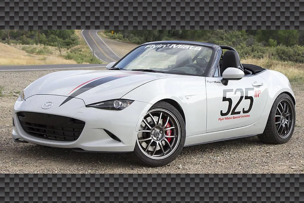 Фахівці тюнінгового ательє Flyin' Miata представили перший екземпляр дорожньої версії Mazda MX-5 у якого стоковий двигун замінили 6,2-літровим восьмициліндровим агрегатом LS3 концерну General Motors, який використовується на спорткарах Chevrolet Corvette і Camaro.