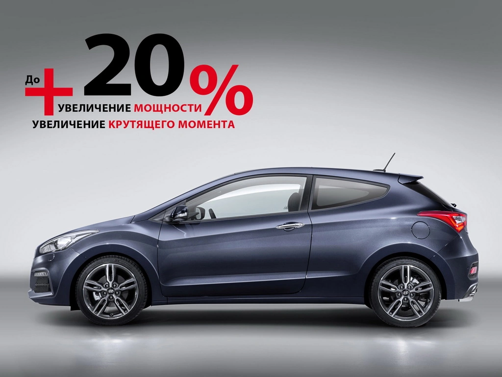 – для турбо-дизельных версий 1.4 crdi 90 л.с. и 1.6 crdi 128 л.с. в зависимости от выбранного пакета можно получить прибавку мощности от 15 до 30 л.с. соответственно (при соблюдении стиля езды гарантируется сокращение расхода топлива в рамках 3-5%).