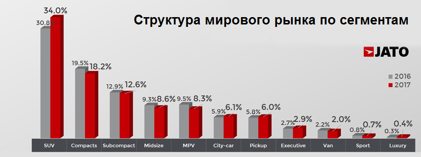 В 2017 году в мире было продано 86,05 млн машин, что на 2,4% больше (+2,05 млн), чем в 2016-м. Об этом гласит статистика аналитического агентства JATO Dynamics, которое составила собственный рейтинг самых популярных автомобилей.