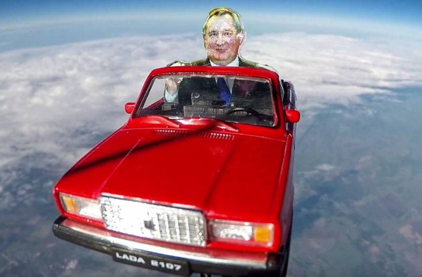 Російський стартап ToSky вирішив повторити знаменитий експеримент Ілона Маска з відправлення Tesla Roadster в космос з манекеном астронавта на борту. У тестовому режимі компанії необхідно було запустити у стратосферу новий висотний аеростат, і в ролі корисного навантаження відправити його з якимось символічним предметом. У підсумку було обрано пародію на ідею каліфорнійського підприємця.