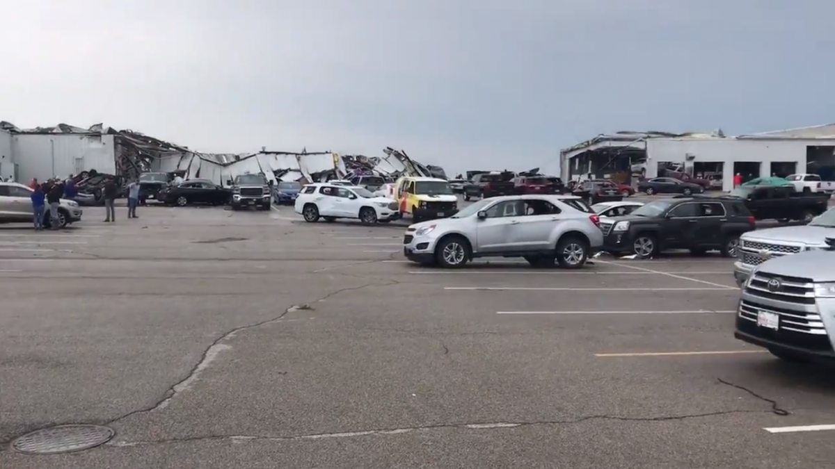 Just talked to the GM at Riley Chevy in Jefferson City. 500+ cars damaged or destroyed. @41actionnews pic.twitter.com/MUbWCdeUYL