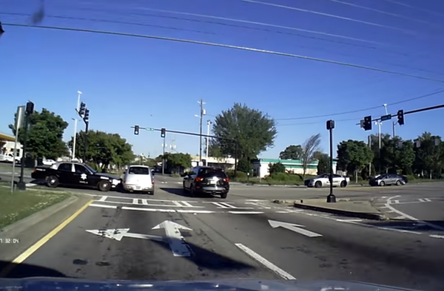 Шериф города Аугуст спешил на вызов на патрульном Ford Crown Victoria, но забыл включить специсгнал. На одном из перекрестком такая оплошность привела к довольно нелепой аварии. Среди людей никто, к счастью, не пострадал, а вот транспортным средствам досталось изрядно.