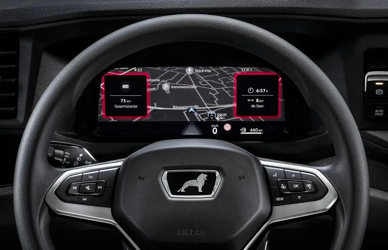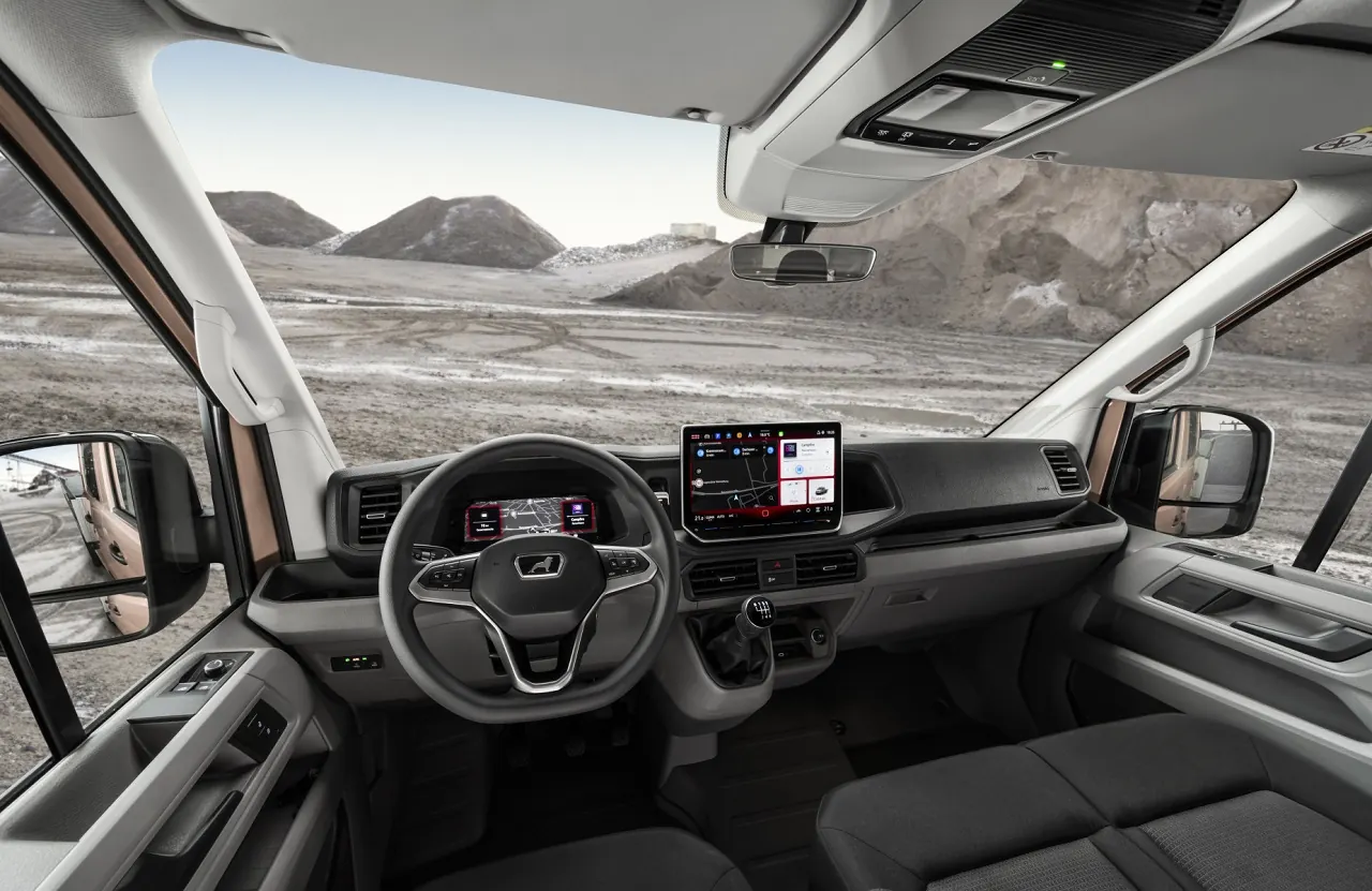 MAN TGE Next Level став набагато комфортнішим. На машині з'явився цифровий щиток приладів. Заслуговує на особливу увагу дисплей тачскрин системи мультимедіа MAN Media Van: діагоналлю 10,4 дюйма (стандарт) або 12,9 дюйма (опція).