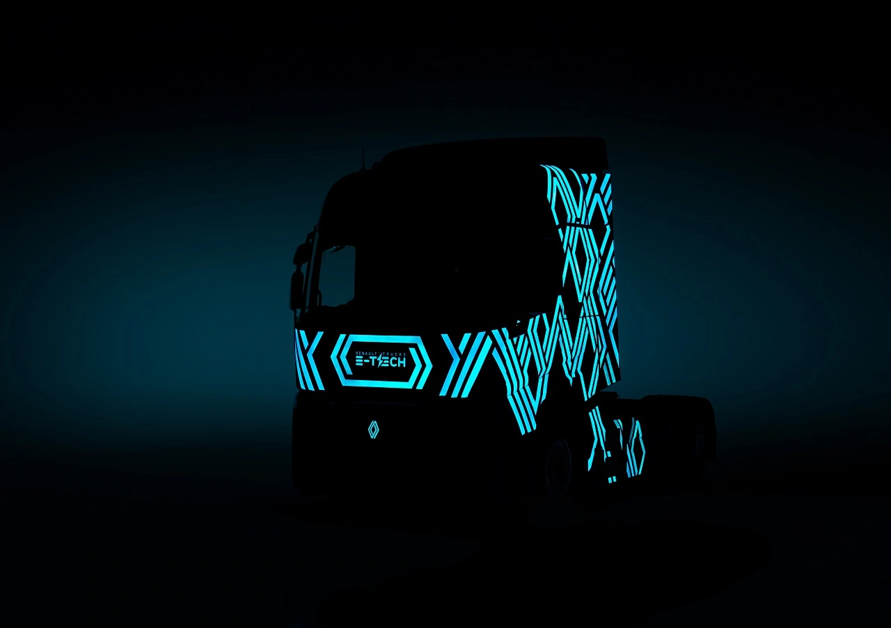 Тягач Renault Trucks E-Tech T в ексклюзивному виконанні Diamond Echo вирізняється світлолюмінісцентним забарвленням, яке розкриває свої особливості в темряві. Фарба, нанесена за допомогою Demon Paint, ґрунтується на технології Lumilor і світиться при дії електричного розряду.