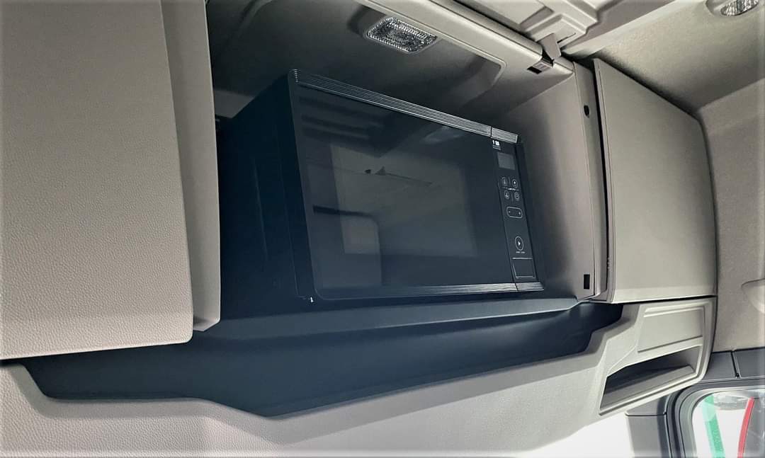В даному випадку тягач оснащений найвищою кабіною, причому в багатій комплектації: коричнева шкіряна оббивка сидінь і дверей, шкіряне кермо, мікрохвильовка, додатковий стояночний кондиціонер, розкладна спальна полиця, магнітола преміум-класу.