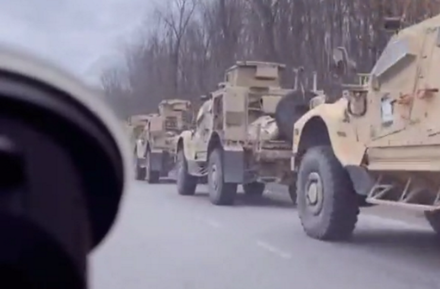 Ролик опублікували у Telegram-каналі NMFTE. Судячи з нього, більше 40 різних бронемашин вишикувалися вздовж дороги. Тут можна помітити американські Oshkosh M-ATV та HMMWV M1152A1, а також британські Husky TSV та Wolfhound. Супроводжує їх український УАЗ-469.