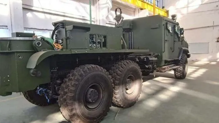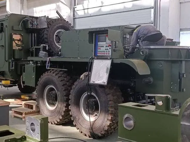 Раніше видання «Мілітарний» показало процес збирання гаубиць. На фото потрапило колісне шасі, схоже на МАЗ-6317, із броньованою кабіною, як у бронемашини «Варта».