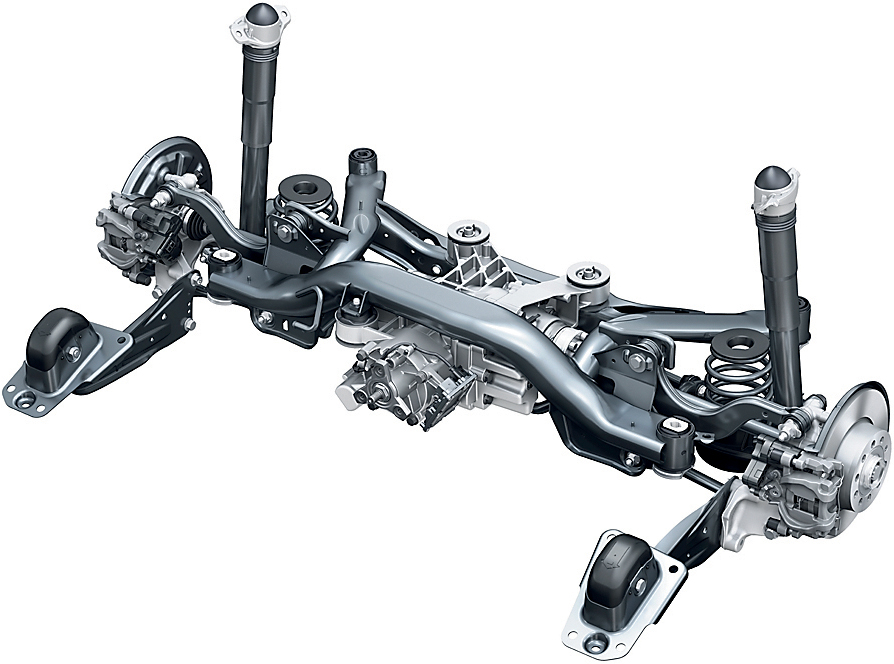 Електрогідравлічна багатодискова муфта повного приводу розташована перед редуктором заднього моста. До речі, робочий тиск рідини в ній може досягати 40 барів, а час спрацьовування – лише кількох мілісекунд.