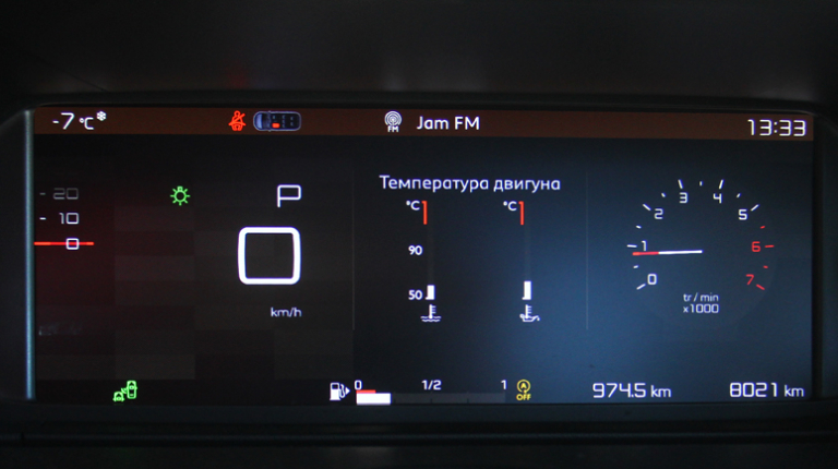 Автомобіль доволі великий, габаритний і, незважаючи на прекрасну оглядовість, потребує навичок водіння. Якщо ви розраховуєте, що іноді за кермом буде ще хтось крім вас, обов’язково беріть машину з камерою верхнього огляду. Картинка, звісно, не така красива, як у сучасних авто преміум-класу, зате дає змогу безстрашно маневрувати. Хоча я додав би окрему кнопку для ввімкнення камери. Нині її можна активувати, якщо водій використовує задню передачу, або за допомогою меню, зробивши три-чотири переходи в системі. А камера інколи потрібна і коли ви передом намагаєтеся вирулити в складній ситуації. І тут вже не до подорожей нетрями дисплея.