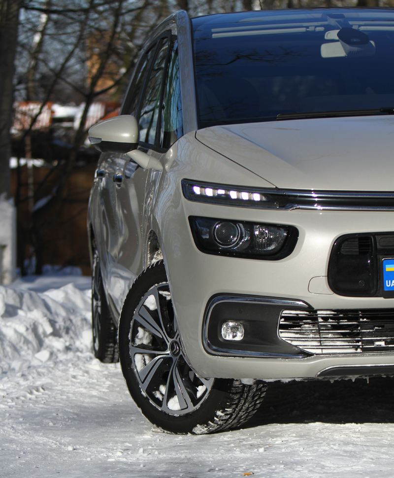 Але аж ніяк не всі нововведення Grand C4 Picasso потрапили до списку додаткових опцій. Наприклад, круїз-контроль з обмежувачем швидкості, система стеження за втомою водія, LED ДХО входять до всіх комплектацій. А Shine передбачає, крім усього іншого, і задні LED ходові вогні, зроблені за технологією 3D. Панорамний 12-дюймовий екран був і раніше, але тепер є також система MirrorScreen і нова розумна 3D-навігація. В процесі тесту датчики паркування замело снігом – і машина одразу повідомила про несправність, проклавши маршрут до найближчого сервісного центру Citroën у Києві. Ну, а підключення смартфона через шнур USB (причому неважливо, що у вас – Apple чи Android), перетворює монітор авто в дзеркало вашого дисплея.