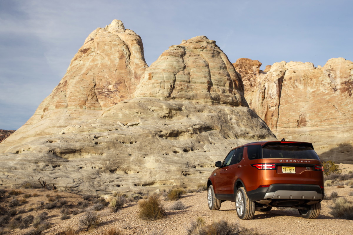 Перше випробування новий Discovery проходить граючись. Далі рівень зростає. Перед нами – нагромадження скель у штаті Юта. Величезні валуни з майже прямовисними стінами – хіба на це взагалі можна піднятися? Тут інструктори LR явно веселішають – радіють нашим нерішучим особам і рішучим діям Discovery. Час спробувати понижувальний ряд передач, хоча вибір режиму руху все ще залишається в положенні Auto. Discovery перевалюється з каменя на камінь, вивішується, чіпляється одним колесом – повземо вперед. Тут чудово демонструється прекрасна геометрія автомобіля – кут в’їзду 34°, з’їзду – 30°, а кожне колесо вивішується аж на півметра.