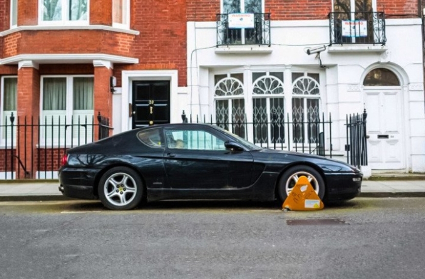 В одном из центральных районов Лондона обнаружена интересная находка. На одной из улиц там уже два года припарковано старое купе Ferrari 456. За это время автомобиль ни разу не сдвинулся с места, а его владелец задолжал за парковку. Неудивительно, что недавно на переднем колесе Феррари появился блокиратор.
