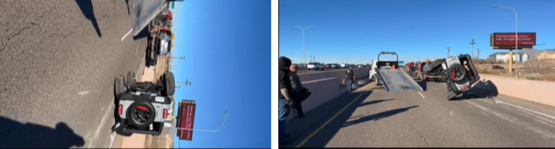 Справа в тому, що водій автовоза не впорався з керуванням і перекинувся на бік, прихопивши Bronco із собою. Від удару автомобіль отримав низку серйозних пошкоджень. У нього погнутий капот, крило та двері з пасажирського боку, пошкоджено дах, розбито вітрове та бічне скло, а також деформована вісь.