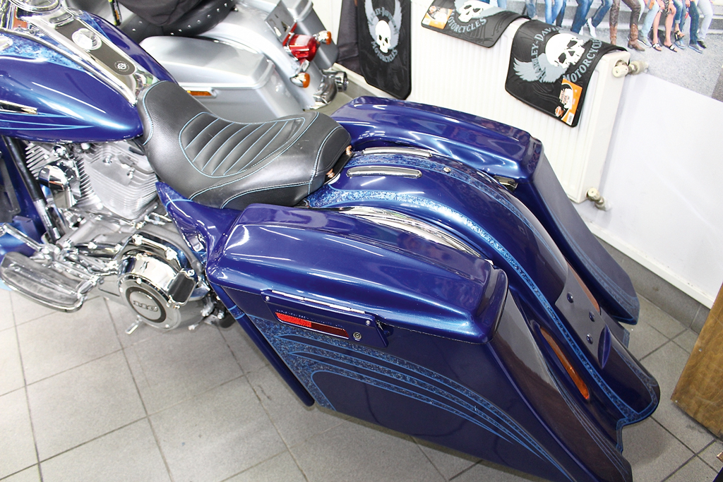 Модель Street Glide относится к большим мотоциклам с длинной базой и низкой посадкой, которые отлично подходят для дальних путешествий и без проблем могут эксплуатироваться в городе. Наличие пластиковых кофров по бокам позволяет взять в дорогу много необходимых вам вещей. На данной технике члены клуба Harley Davidson накатывают за год по дорогам Европы и не только по 20-30 тыс. км.
