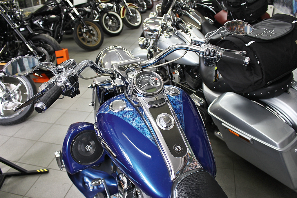 Одна из популярных точек продаж мототехники Harley Davidson – столичный мотосалон компании Moto Pro. Это место – одно из немногих в Украине, где в продаже постоянно имеются около 30 мотоциклов этой легендарной марки. Причем здесь собрана техника разных годов выпуска.