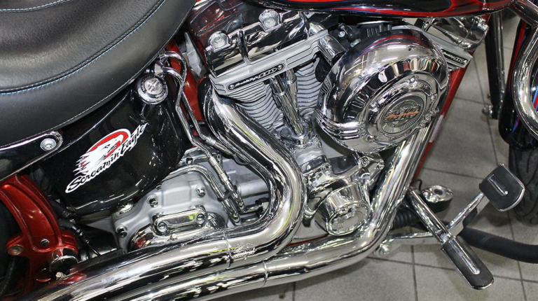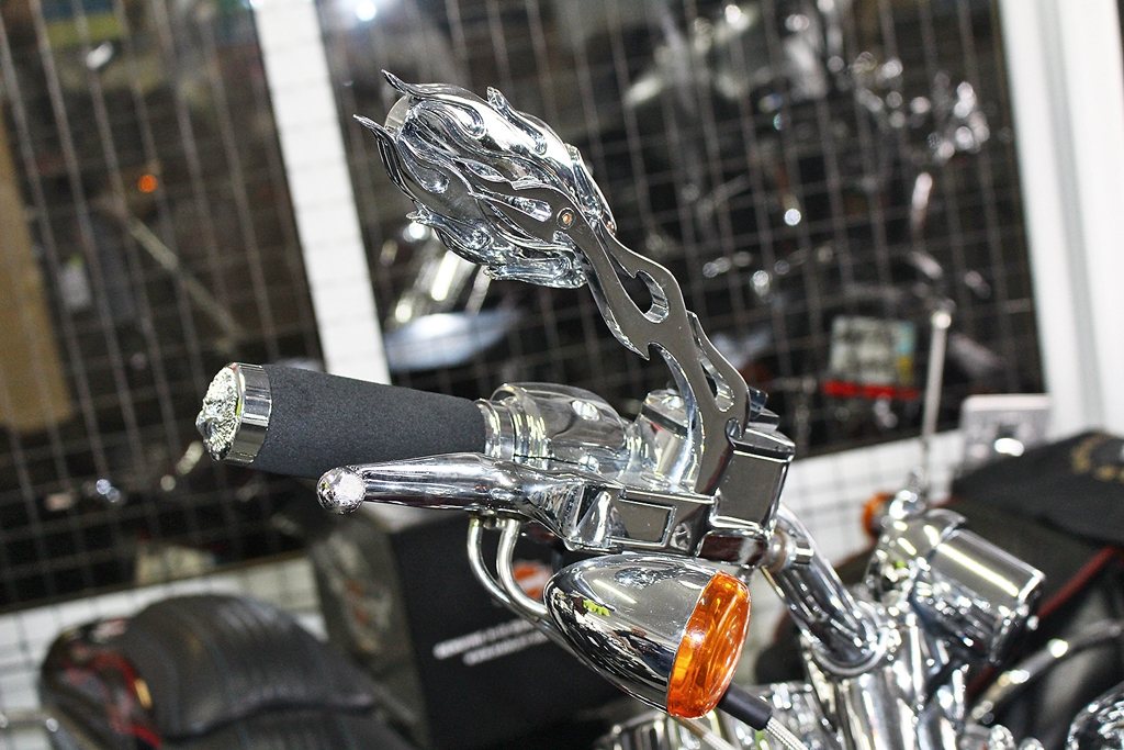 Представленная в салоне модель Screamin Eagle Softail Springer CVO 2007 г. – из тюнинговой линейки мотоциклов Harley-Davidson, которые производят малыми сериями в стилистике “кастом” (у них есть индивидуальные черты). Их отличительная маркировка – аббревиатура CVO (Custom Vehicle Operations). Инжекторный двигатель V-Twin с баллансирными валами даже на 6-й передаче имеет большой запас крутящего момента, который пригодится и в городе и на трассе.