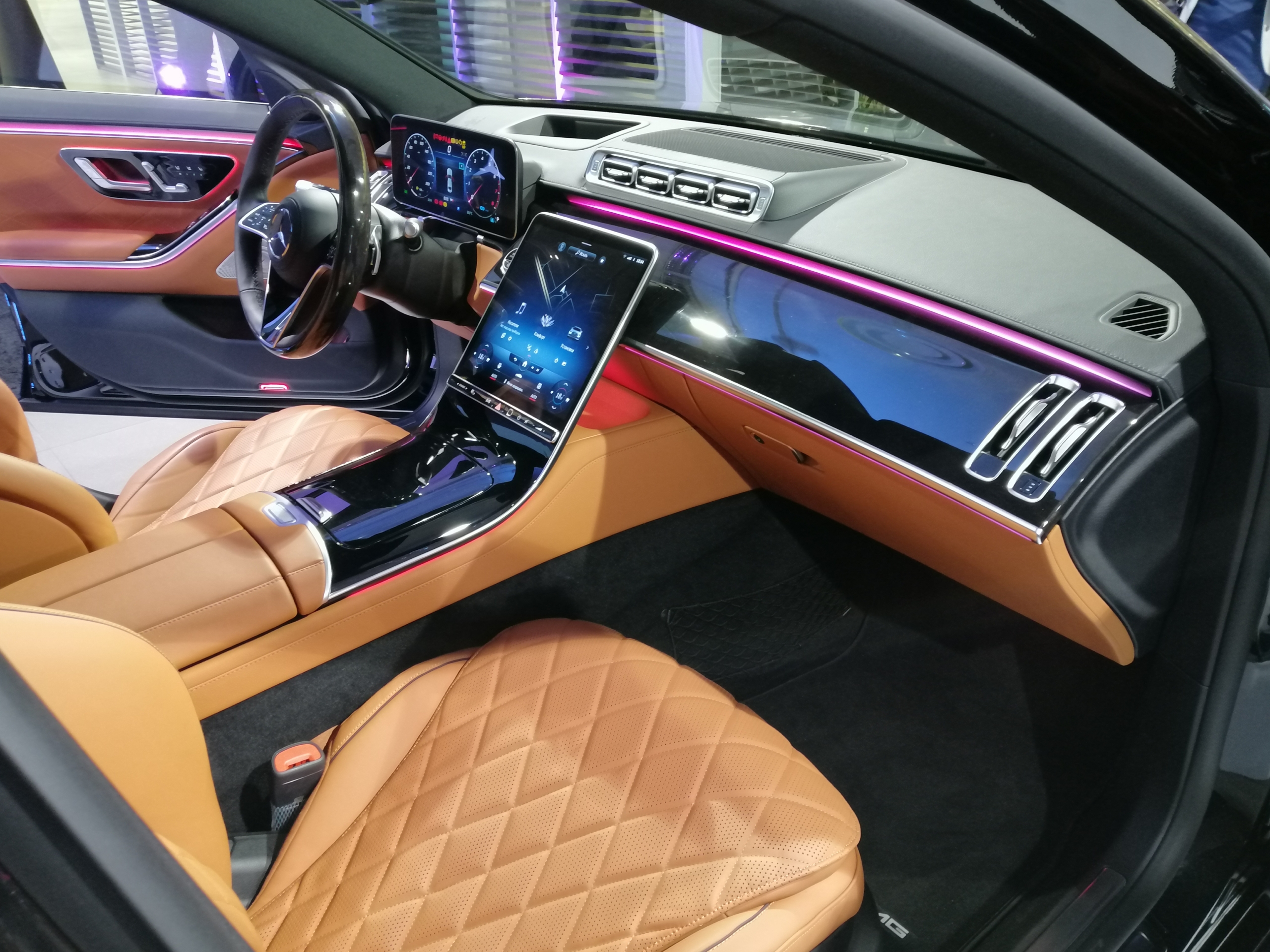 Никакая другая из инноваций за последние годы не упростила столь радикально управление в автомобиле Mercedes-Benz, как это сделала система MBUX (Mercedes-Benz User Experience). В новом S-Классе дебютирует второе поколение этой способной к обучению системы, представленной впервые в 2018 г. Интерьер становится ещё более цифровым и интеллектуальным, поскольку и аппаратная, и программная его части совершили большой рывок: кристально чёткое изображение на больших дисплеях, которых может быть до пяти штук, частично с технологией OLED, облегчает управление автомобильными и повышающими комфорт функциями. Существенно расширились возможности персонализации и интуитивного управления. Это актуально как для задней части салона, так и для водителя: так, например, новый 3D-дисплей водителя впервые одним нажатием кнопки открывает для него возможность трёхмерного восприятия изображения благодаря функции отслеживания движения глаз.