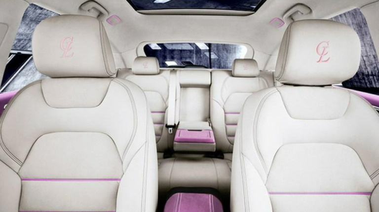 При желании владелицы смогут украсить подголовники сидений своими инициалами. Кроме того, комплектация включает эксклюзивный розовый зонт с позолоченной ручкой. В добавок установлены камера заднего вида и система контроля полосы движения.