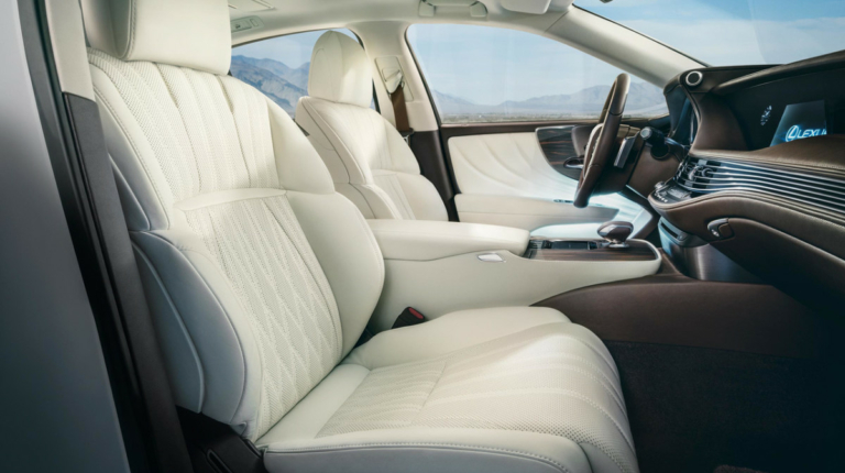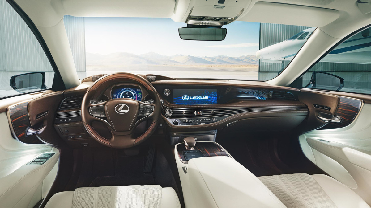 У салоні Lexus LS 500 2018 з’явилися віртуальна панель приладів і нова система проектування даних на лобове скло. Великий 12,3-дюймовий дисплей мультимедіа сусідить з циферблатом годинника. Для навігації в меню встановлено сенсорну панель, що розпізнає літери, написані пальцями.