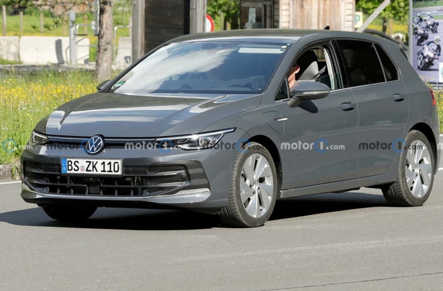 На них оновлений хетчбек повністю позбавлений камуфляжу. У передній частині привертають увагу нові фари, які виглядають тоншими, ніж раніше та, ймовірно, адаптивні. Актуальний Golf пропонується зі стандартними матричними світлодіодними фарами. Зокрема, адаптивна оптика була у прототипу eHybrid, плагін-гібридної версії, розташованої під електрифікованим хот-хетчем GTE. Зарядний порт на передньому крилі прототипу свідчить про те, що перед нами плагін-гібрид Volkswagen Golf 8.