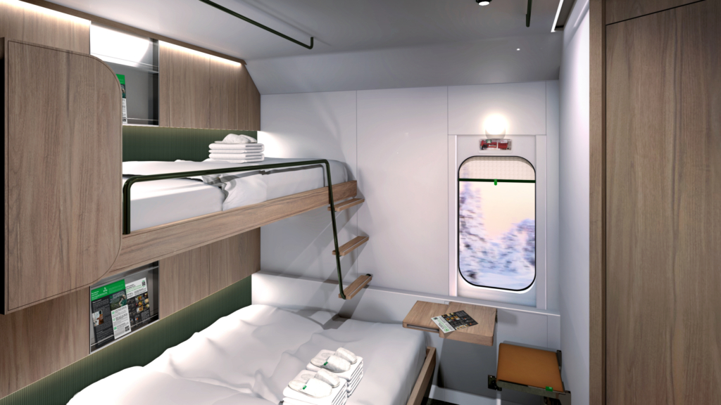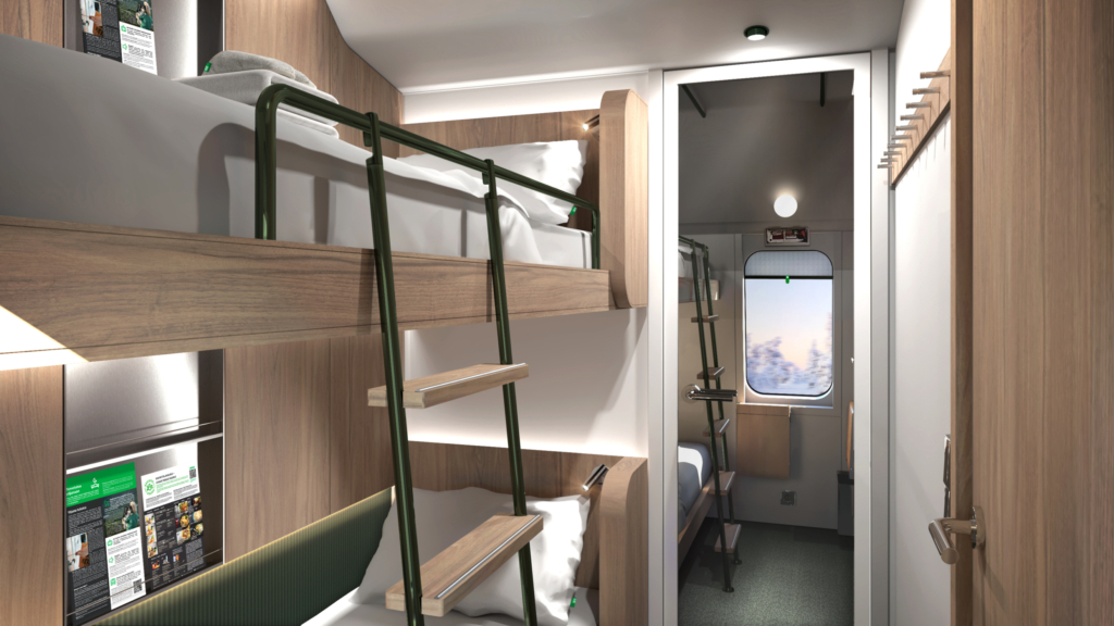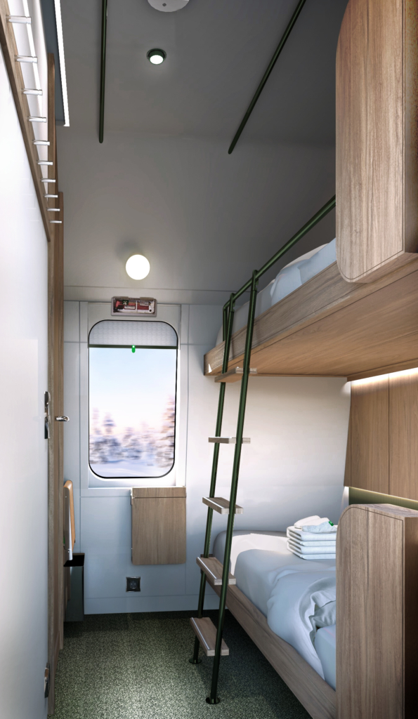 Нові спальні вагони мають комфорт п’ятизіркового готелю – з відповідними купе. Кожен такий «номер» обладнають не лише широкими ліжками, а й туалетом, а в деяких – душем. Передбачається облаштувати спеціальні сімейні купе з можливістю встановлення дитячого ліжечка. А вантажні вагони допоможуть пасажирами перевозити із собою особисті автомобілі.